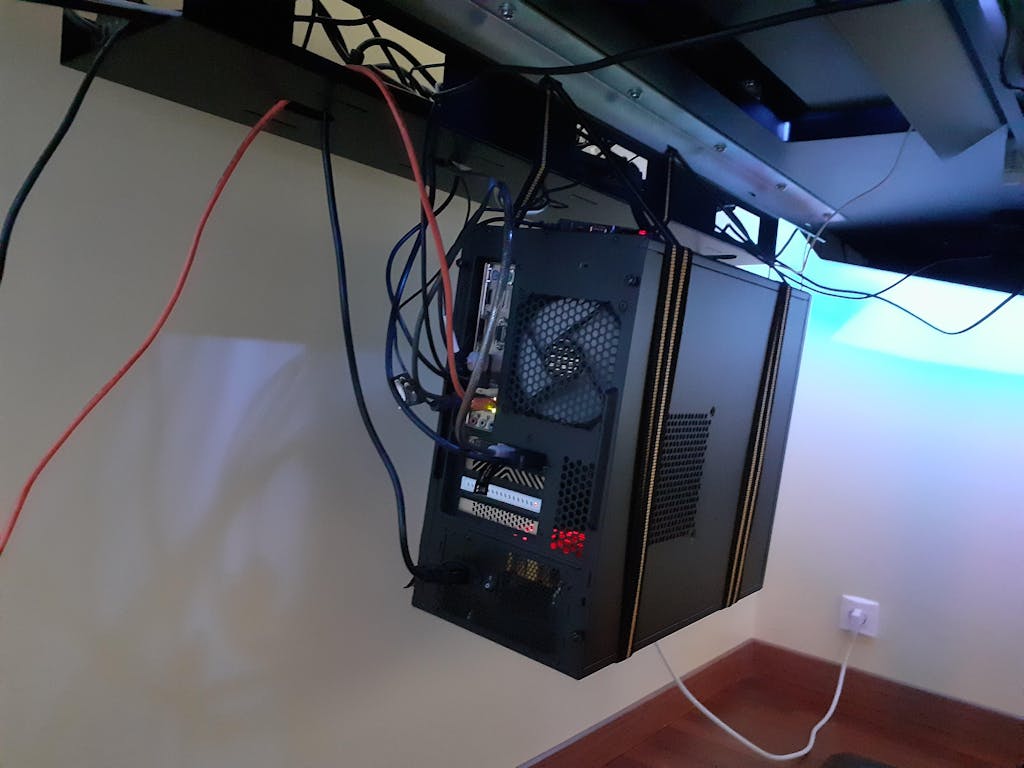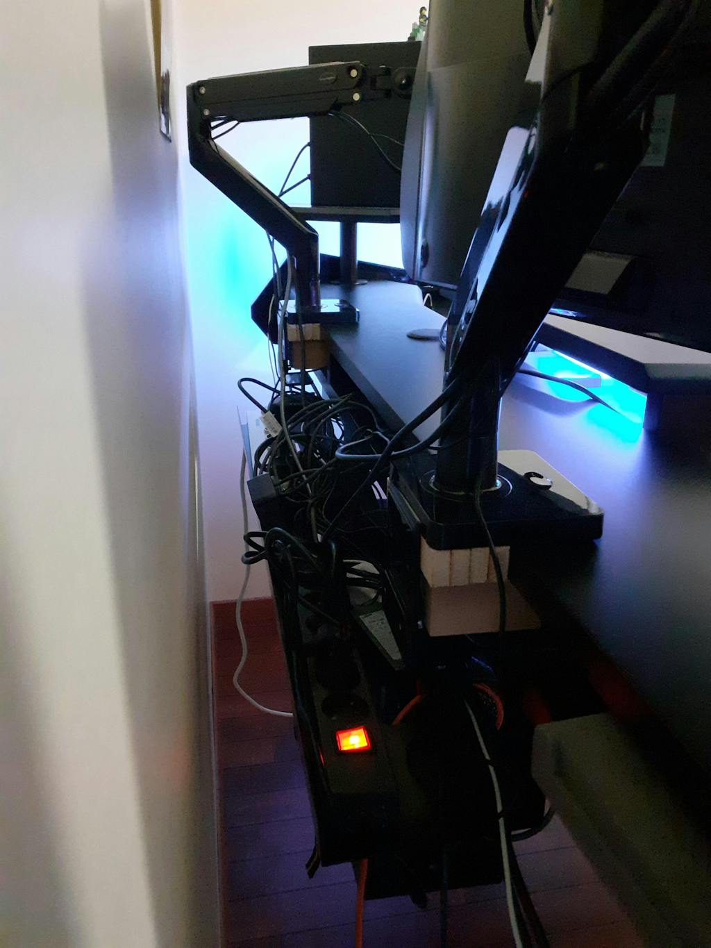Lowered monitor shelf to keep your monitor in your eye line to not lose track.