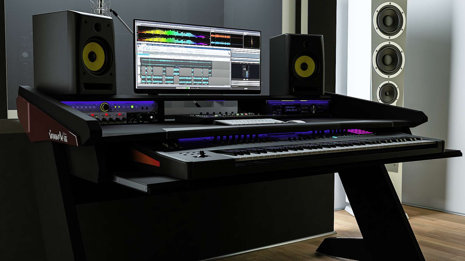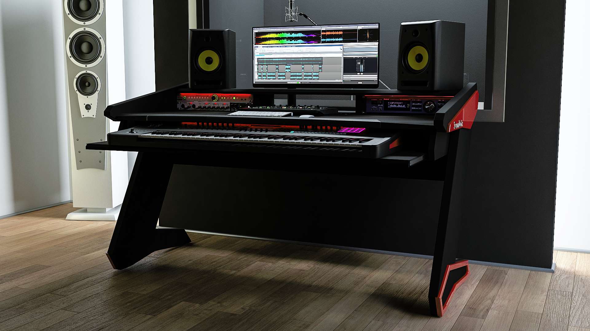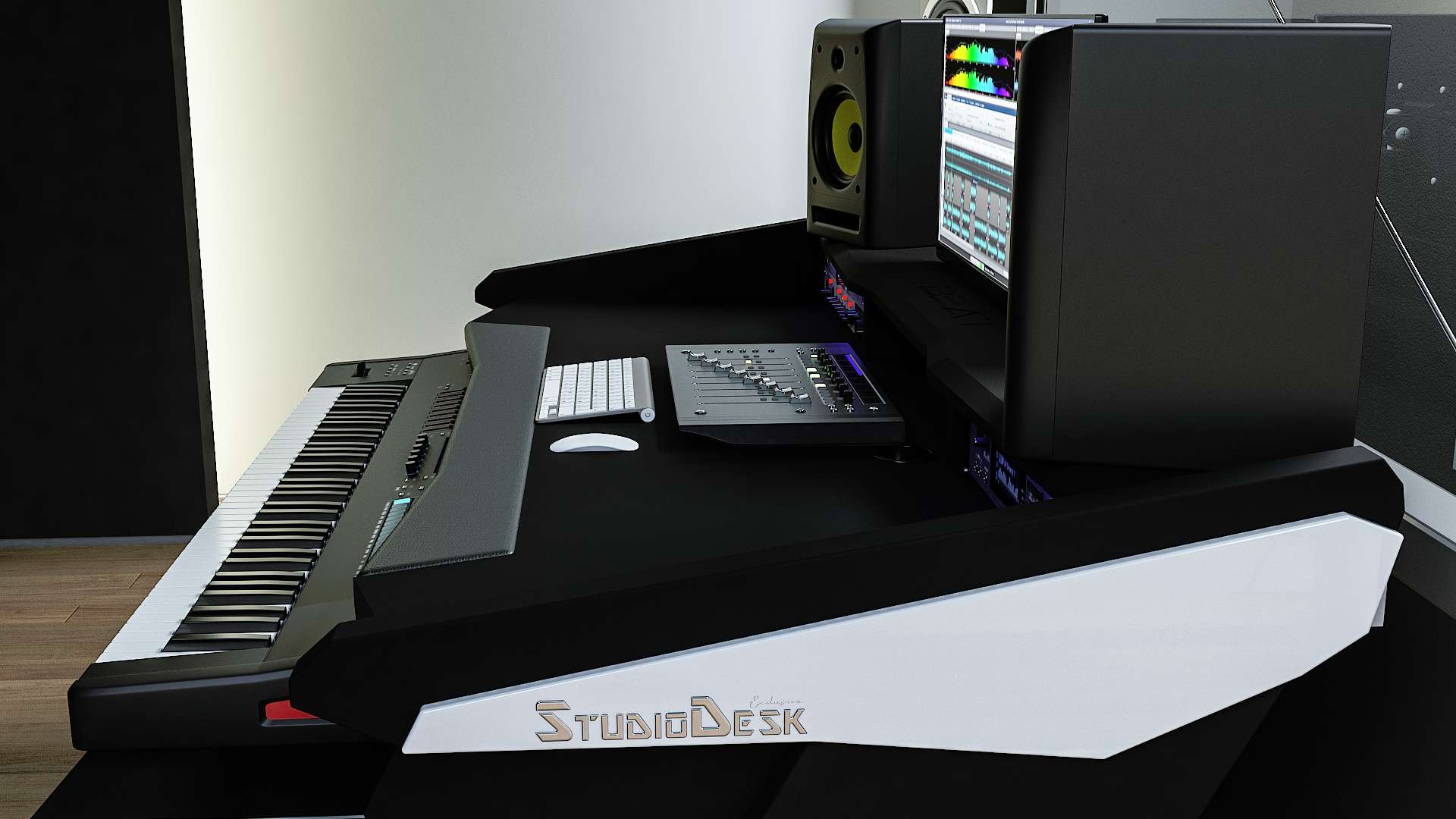 Beat Series is here to provide you with an elegant and ergonomic workspace with all the features known by professional studios. Its modern and futuristic design will give you joy and inspire you. The desk is the centerpiece of your studio and statement how serious you are about your business. Beat Series is a compact but professional workstation to serve you for many years to come.