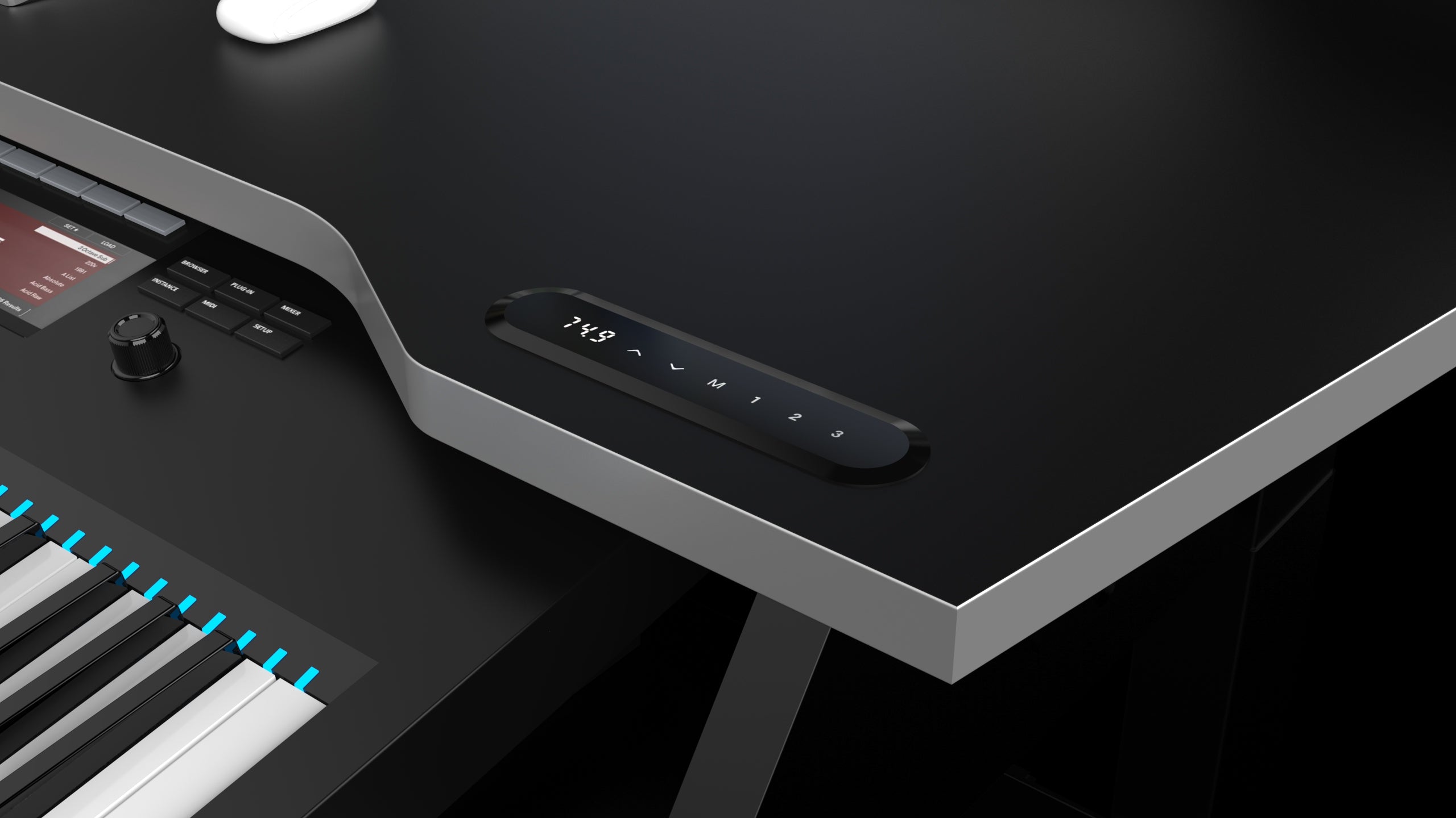 Designed to seamlessly blend into any bedroom setting, our Spirit workstation occupies a mere one square meters of your room. This workstation is designed to provide you with a dedicated creative home studio space where all your gear is thoughtfully positioned and easily accessible. The well-organized layout of the space is intended to enhance your creativity and significantly streamline your workflow, all while immersing you in the ambiance of a true professional environment. The desk is leaning on our standard Electric sit and stand platform allowing you seamless transition from a seated creative mode to dancing to the beats of your latest track with a single press of the button. The Spirit workstation aligns perfectly with your creative spirit, enabling you to explore your full artistic potential.