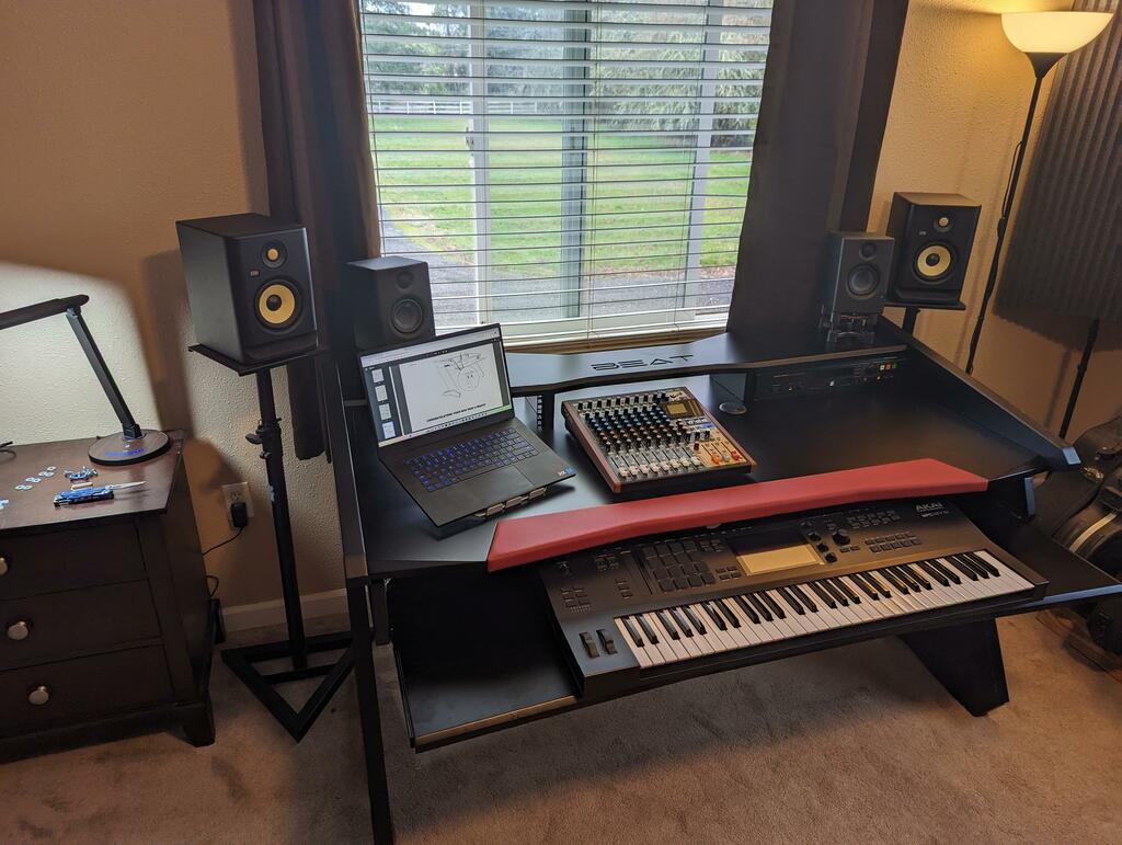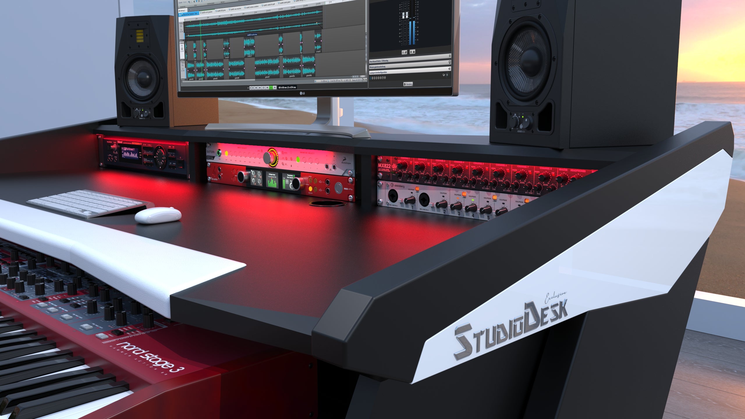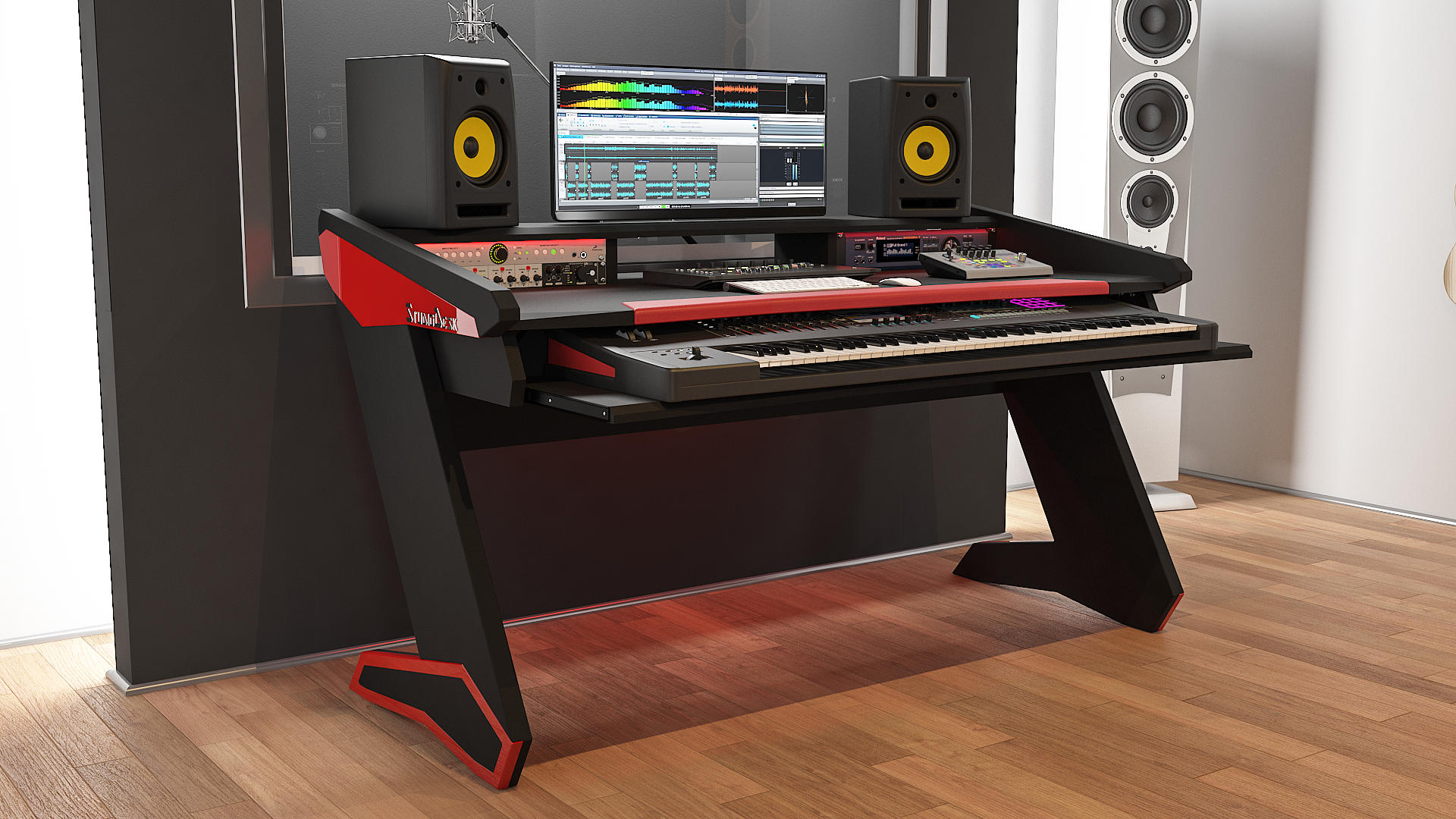 Beat Series is here to provide you with an elegant and ergonomic workspace with all the features known by professional studios. Its modern and futuristic design will give you joy and inspire you. The desk is the centerpiece of your studio and statement how serious you are about your business. Beat Series is a compact but professional workstation to serve you for many years to come.